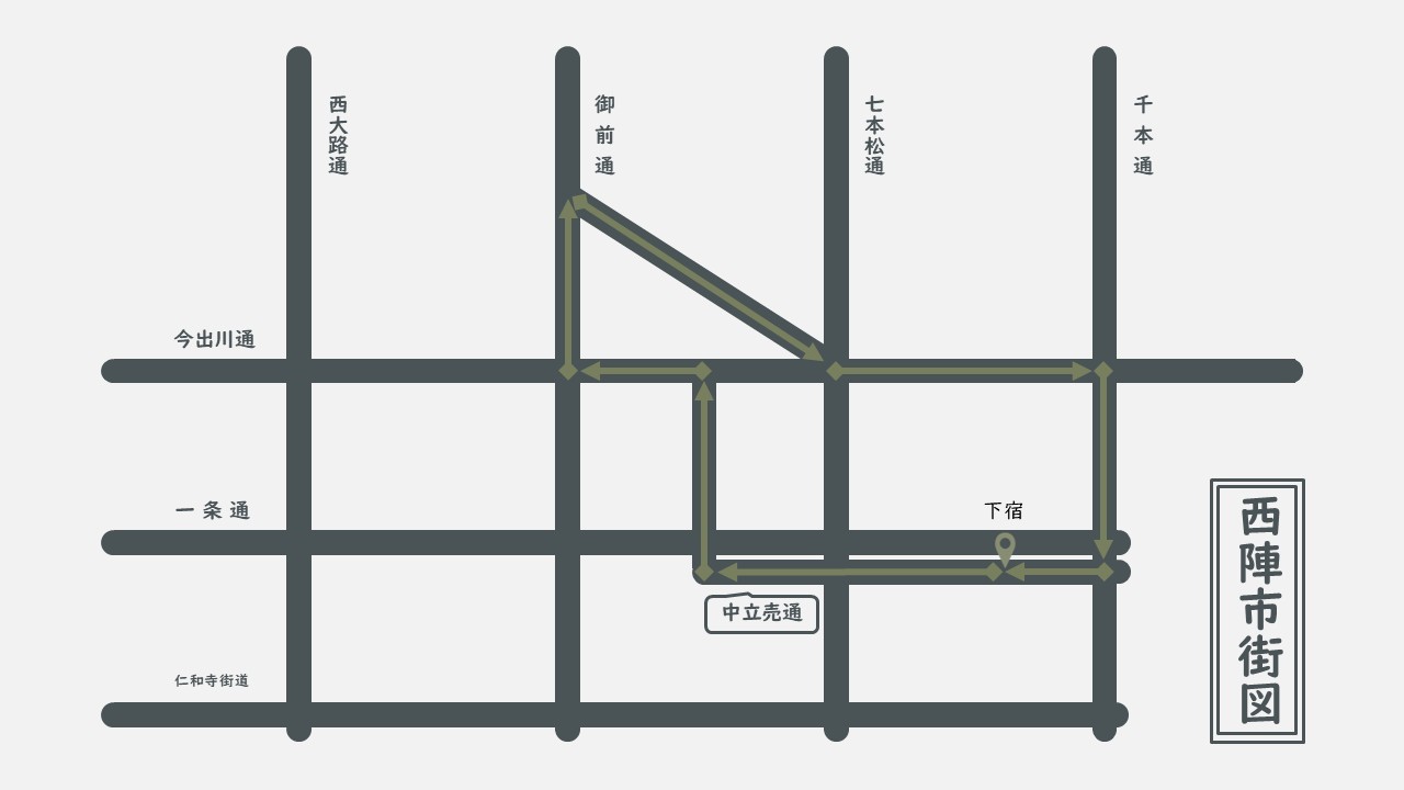 晴れた日の夕方、堀川通を歩きながら、時折見られる京都らしい景色を通り過ぎるのは幸せな体験だった。もしかしたら、古着屋ではなく、堀川通を歩くことが目的だったかもしれない。